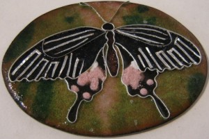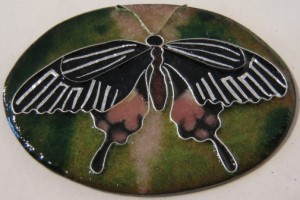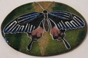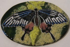 Well, the summer is over and I am SO looking forward to spending time in the studio, processing all my amazing experiences of the summer! I am particularly excited about getting started on my Armless Maiden panels. As an exercise to prepare myself, I decided to make a series of small pieces, that will probably end up being necklaces or brooches, just to get myself in practice. Cloisonne is not a technique that I am particularly familiar with, so I decided to take some images from nature, and see how closely I could re-produce them. It has been a really interesting experience! I am a strong believer in sometimes concentrating entirely on technique – and that’s what I have done with these pieces. There are 5 pieces in the series. I will post the process pictures of them all – below is the first one – a butterfly, including the photo I was working from.