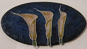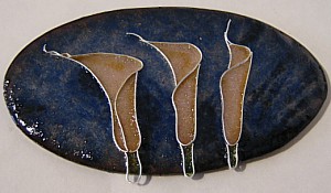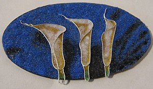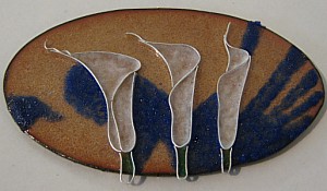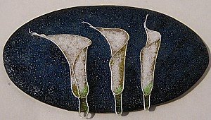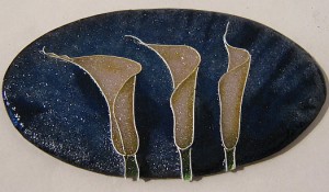I was happier with the way this second cloisonne practice project turned out – but it was partially because of the design. I liked the graceful shape of the lilies, and their variety while the butterfly was too symmetrical; too much like a specimen.