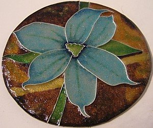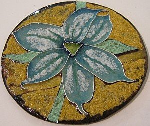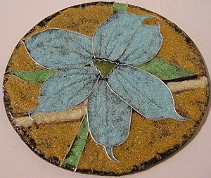 Here’s the third installment in my cloisonne practice project series. Though I couldn’t reproduce the particular blue of the blue-eye flower in the photo (I have a more limited palette than Mother Nature!) I was still very happy with the way this one turned out.