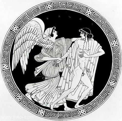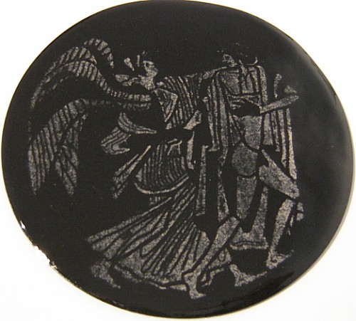 I have always been enamoured of Classical Greek pottery. I like the stylisation better than the classical realism – to me it is much more evocative. I wanted to play with the process a little before branching out on my own (which is invariably my practice) so I have a few designs to start with. The first is Eos ‘Kidnaps Tithonis’.