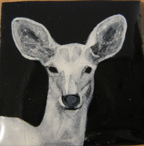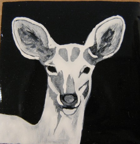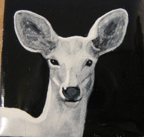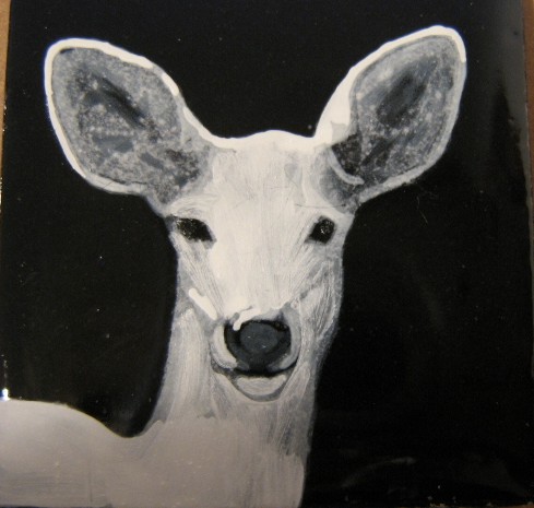 I am continuing to try to develop my skills in grisaille enamel painting. I have taken some shots of the process of developing the piece, so you can get some idea of how it’s done. The design is the next in my series of spirit or ghost animals. All white animals in Celtic mythology were otherworldly animals. Most commonly the white deer was associated with Ossian’s mother.