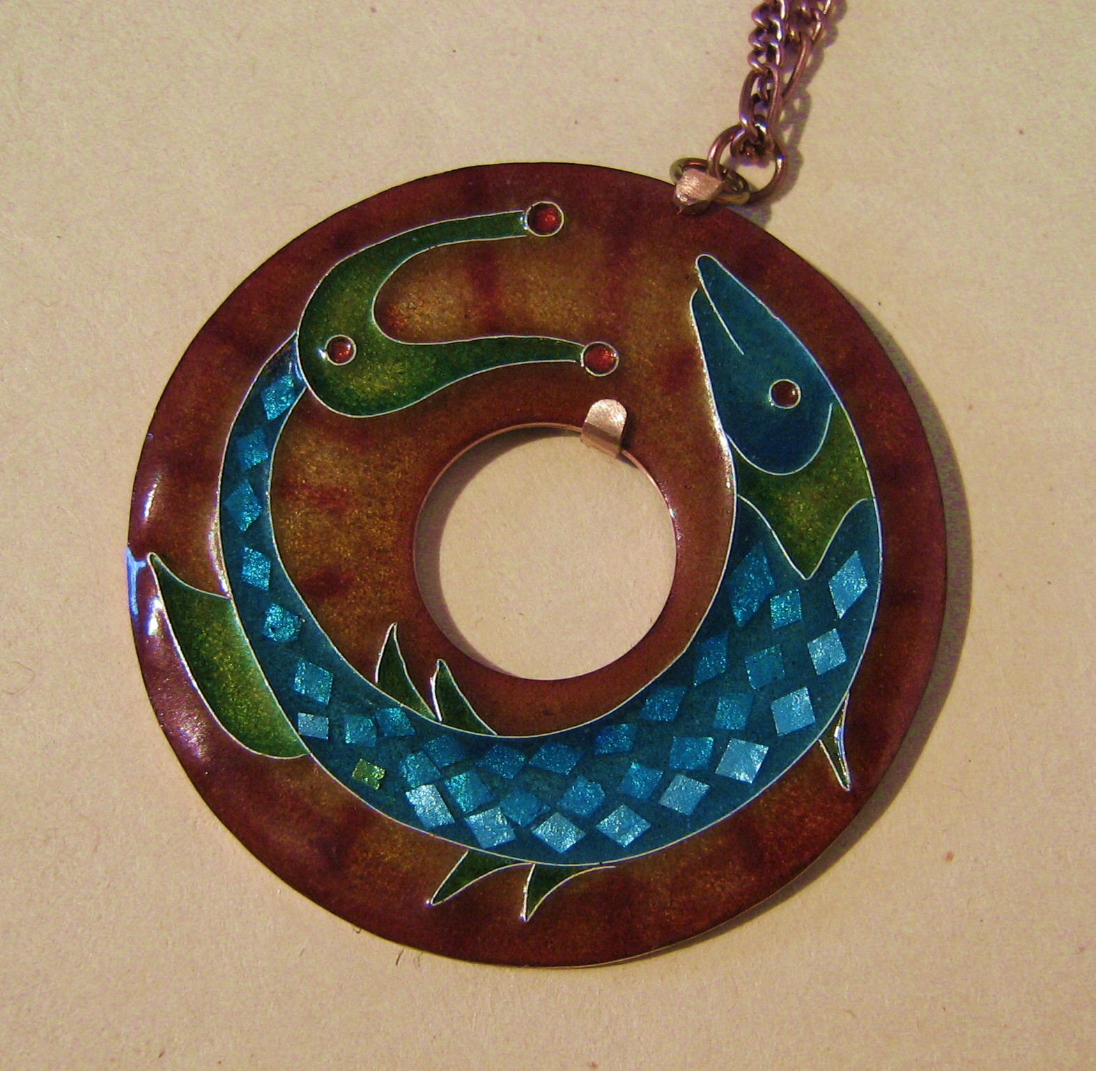 Anyway I picked up this fish project – which I left unfinished three years ago – and decided that I could complete it now. That wasn’t a fear thing – that was a making a living thing. Sometimes it makes me sad and sometimes it makes me angry – but the reality is that I can only spend a certain amount of time on things that are going to be hard to sell. When I started this piece – it was even before the Armless Maiden panels were a thought in the back of my mind. I just wanted to explore cloisonne. But I stopped in the middle of this piece – because it was clear from the labour involved that it would be in the $300-$400 range – and that is higher than I can usually afford to sell …