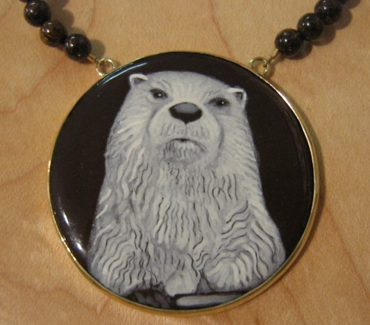 Since my work is inspired by folklore and myth – a piece always starts with a story.In Irish folklore the otter is often characterized as a friendly and helpful creature, and is given the name ‘water dog’. In the Irish story The Voyage of Maelduin, otters bring the sailors salmon to eat, collecting firewood and cooking them as well. The Voyage of Brendan tells of how an otter similarly assisted a hermit. St. Cuthbert is the patron saint of otters, and after standing waist-deep in the North Sea during his nightly prayer vigils, two otters would come and warm his feet with their breath and dry them with their fur.