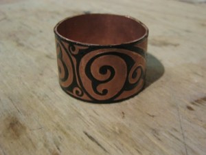 The foot of this bowl is actually a piece of plumbing pipe! I painted the resit around it – and when I put it in the etch vat, I covered the top and bottom with tape to protect the inside from the acid.