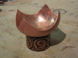Hammering is really addictive! It’s so amazing to feel the bowl taking shape under your hand. I am excited this week because I have also designed some feet for the bowls that I will etch and enamel in champleve technique.