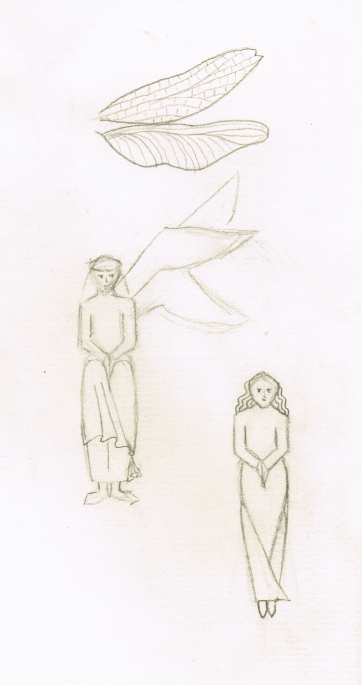 My own love affair with enamel was sparked by a visit to Ireland way back in 1984, when I first discovered that the Celts were Europe’s first enamellists. The technique they used is now called champlevé (for champ, field, and levé, raised – because the design is created using a raised field of metal). So, the first piece that came to me was in this technique and was, inspired by the leanan-sidhe, a constant figure throughout the book of the devouring inspiration that destroys as it creates. This design came quickly – inspired by a long thin medieval figure from an early illuminated manuscript. The initial sketches will be formalized to suit the technique.