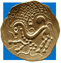 Gold Stater of the Parisii c.100-75BC France horses head a fishing net used on the Seine